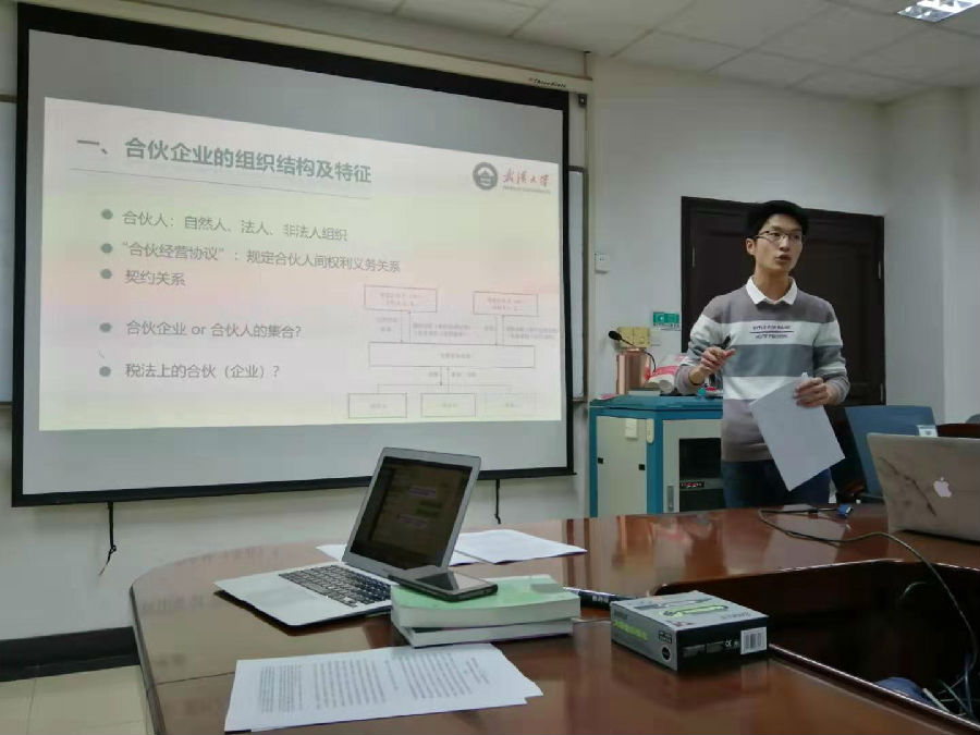 清凉素秋节,天高肃景澈。最近的天,适合放开头脑,也适合发散思维。11月14日晚在经济法教研室,武汉大学经济法研究所财税与法律研究中心2019-2020学年第3期(总第41期)读书会如期举行,本期读书会由2019级硕士研究生苏怡雯主持,2018级硕士研究生刘云梦、柯阳分别就合伙企业的税收优惠、医药行业“走票”行为进行主题报告。