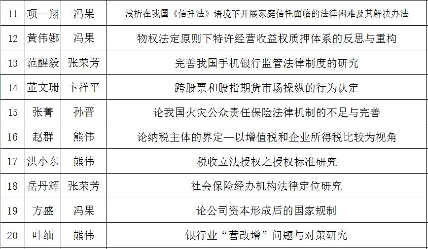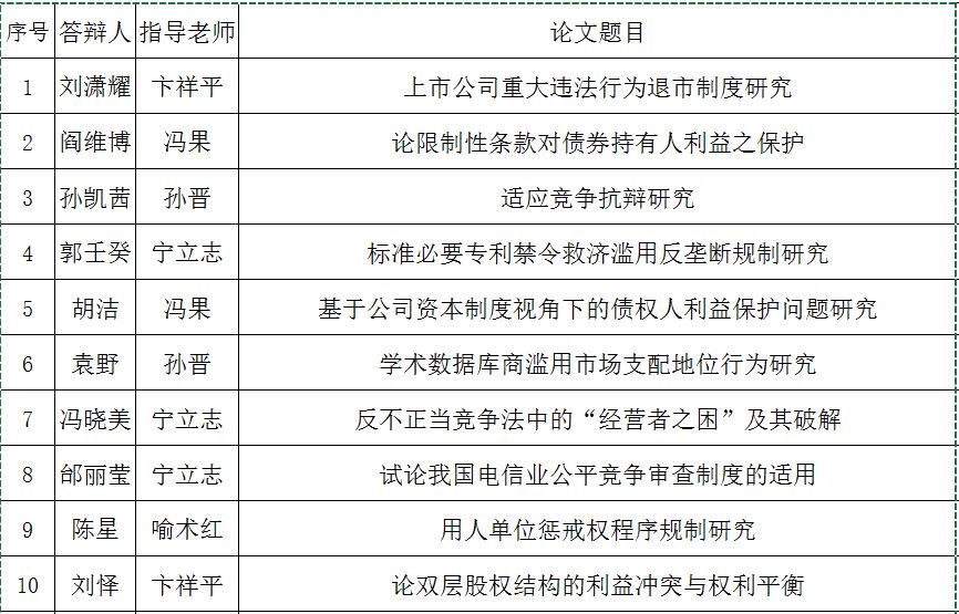 答辩地点:武汉大学经济法研究所法学院楼331室(经济法教研室)