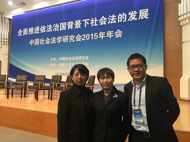 2015年10月24日-25日,由中国人民大学法学院承办的中国社会法学研究会2015年年会在北京市隆重召开。本次大会以“全面依法推进法治国家背景下社会法的发展”为主题,围绕“社会法与法治社会建设”、“健全劳动关系协调机制”、“劳动权利的体系和内容”、“社会保障法的顶层设计和制度完善”、“民法法典化下劳动法的机遇与挑战”五个方面进行了探讨。武汉大学经济法研究所法学院经济法研究所张荣芳教授、喻术红教授、班小辉博士应邀参加了本次年会,并分别向大会提交了《论被开除公职者的退休金权利限制规则》、《网络技术对劳动关系的影响》、《论非典型劳动者的就业转换权》三篇学术论文。