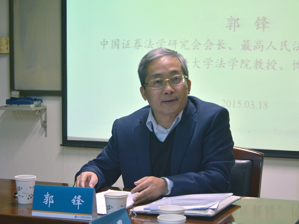 3月18日,应武汉大学经济法研究所资本市场法治研究中心邀请,中国证券法学研究会会长、最高人民法院研究室副主任、中央财经大学法学院教授、博士生导师郭锋做客我院,为广大师生带来了以“《证券法》修改与股票发行注册制改革”为主题的精彩讲座。