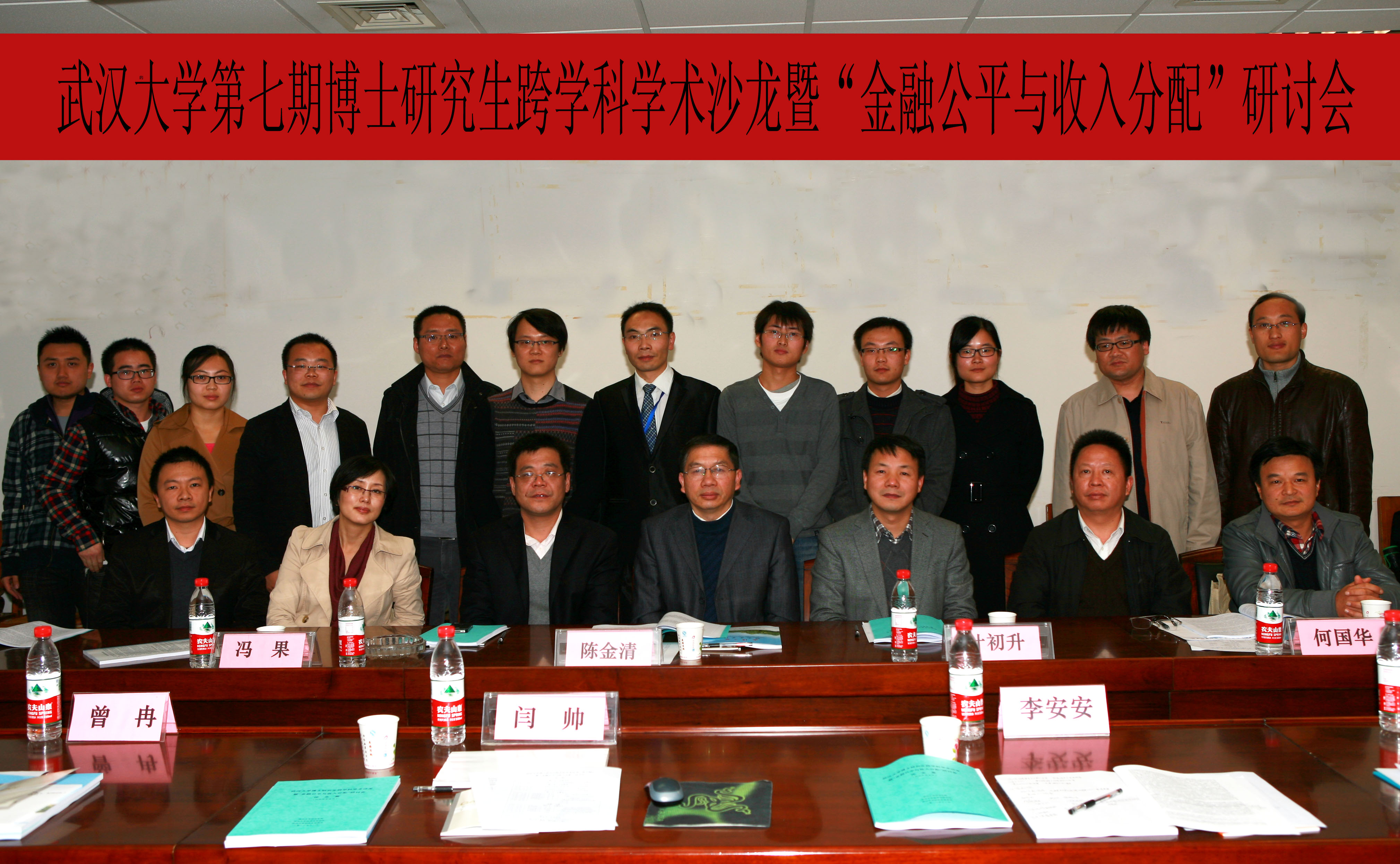 2012年11月10日,由武汉大学经济法研究所研究生院主办,武汉大学经济法研究所和武汉大学经济法研究所研究生学报社承办的“金融公平与收入分配”研讨会在法学院331会议室成功举行。本次论坛由武汉大学经济法研究所法学院副院长、武汉大学经济法研究所所长冯果教授担任主持人,武汉大学经济法研究所经济发展研究中心副主任、《经济评论》执行主编叶初升教授,《江汉论坛》杂志社陈金清社长,武汉大学经济法研究所经济与管理学院何国华教授和武汉大学经济法研究所竞争法与竞争政策研究中心主任孙晋教授担任点评嘉宾。来自法学、经济学、政治学等不同学科的8位博士研究生围绕“金融公平与收入分配”议题,对当前金融公平问题、社会收入分配问题、公平正义问题进行了学理剖析,展现了青年学者勇于探索的理论锐气。