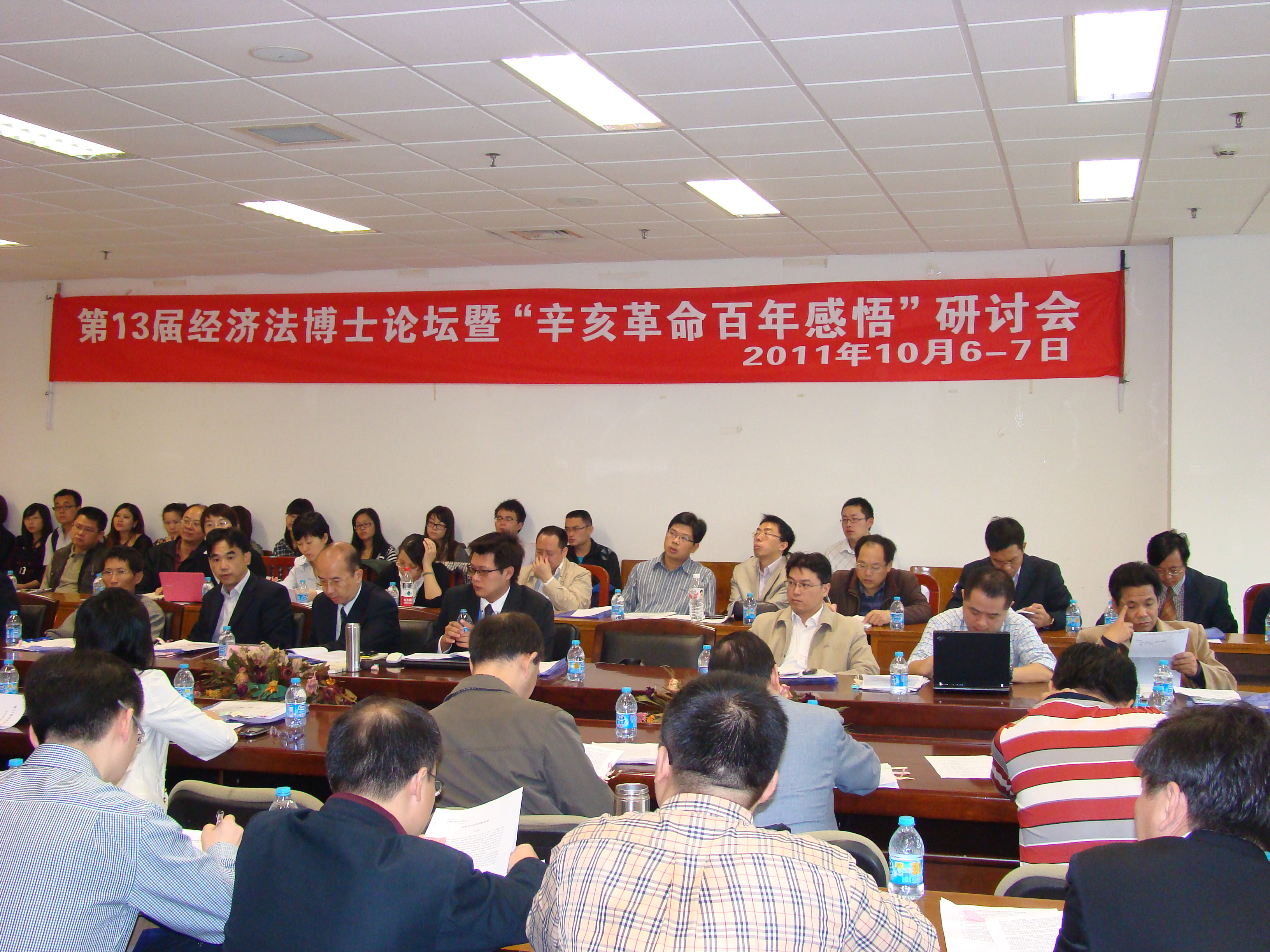 2011年10月6日-7日,以中国经济法学研究会副会长、我院漆多俊教授的学术团队为主体的第13届经济法学博士论坛暨“辛亥革命百年感悟”学术研讨会在武汉大学经济法研究所法学院325教研室隆重举行。这次会议由漆多俊教授在汉弟子合力主办,武大经济法研究所具体承办。