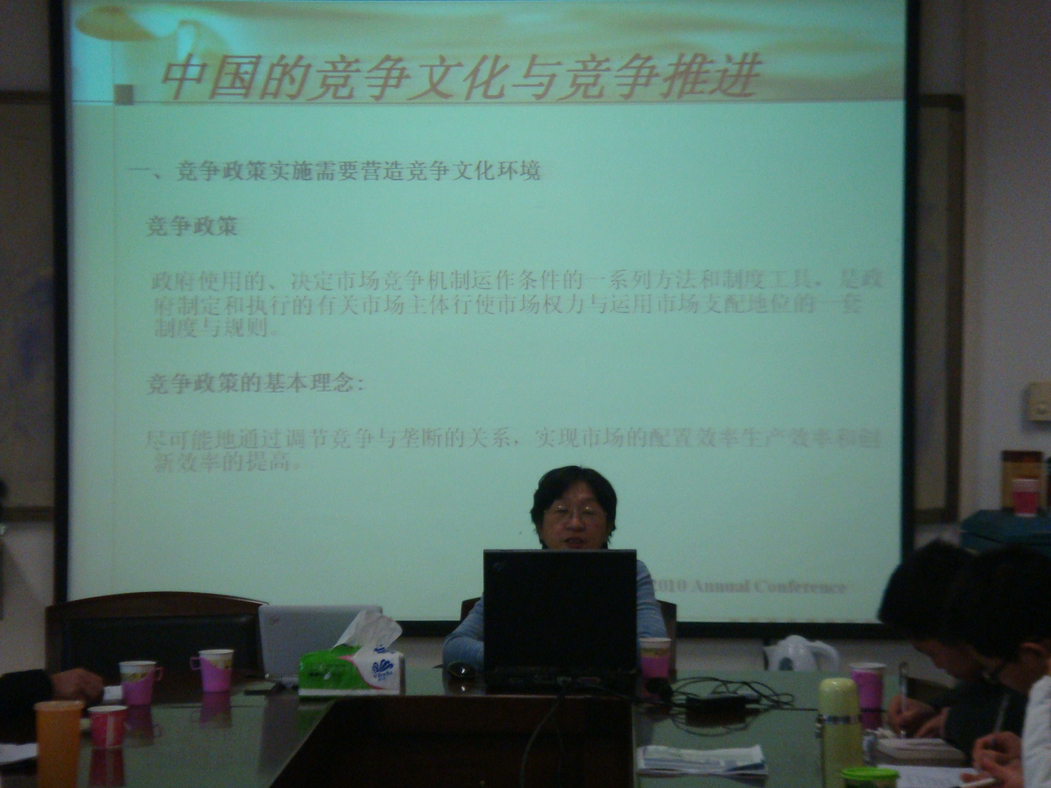 其次,徐教授谈到了中国竞争文化和竞争推进。她认为作为中性的、自发性的竞争具有两面性。如今,竞争机制被赋予了新的内涵,使人们关注竞争对大众利益、经济民主和市场公平的影响,此时的竞争已成为文化层面的东西。中国传统文化中存在诸如重农抑商、敛财观念、礼法融合、差序格局、集体本位、官本位等竞争文化因素。徐教授还指出,竞争文化形成的过程事实上就是市场经济成熟和竞争法制完善的过程。而竞争推进的主要包括对规范性文件的竞争审查;提升公众对竞争政策的了解;监督私有化和垄断行业放松管制的过程以及抵制特殊利益集团限制竞争行为等内容。此外,徐教授还谈及了中国培育竞争文化和竞争推进的实践,这包括与竞争有关的法律法规的制定与实施;垄断行业的改革和竞争机制的引入;企业和个人竞争意识的增强以及竞争文化的培育与传播。