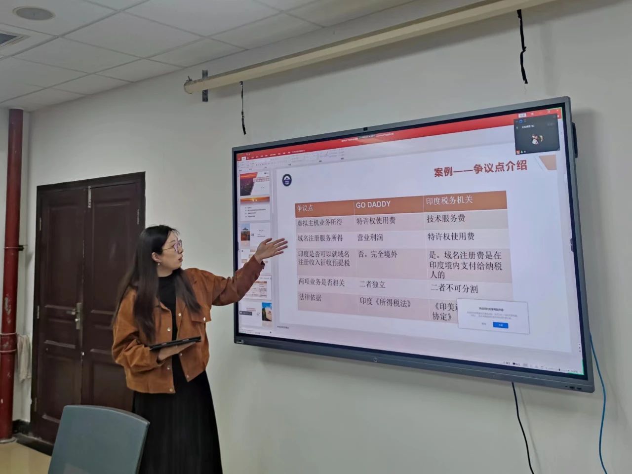 在主题汇报阶段,孙琳以GoDaddy特许权使用费跨境交易税案引入,介绍了数字经济对特许权使用费跨境所得征税带来的影响。随后分析了以特许权使用费和常设机构为核心的国际改革政策,并结合我国法律的规定,探讨了我国法律规定目前存在的不足和完善路径。