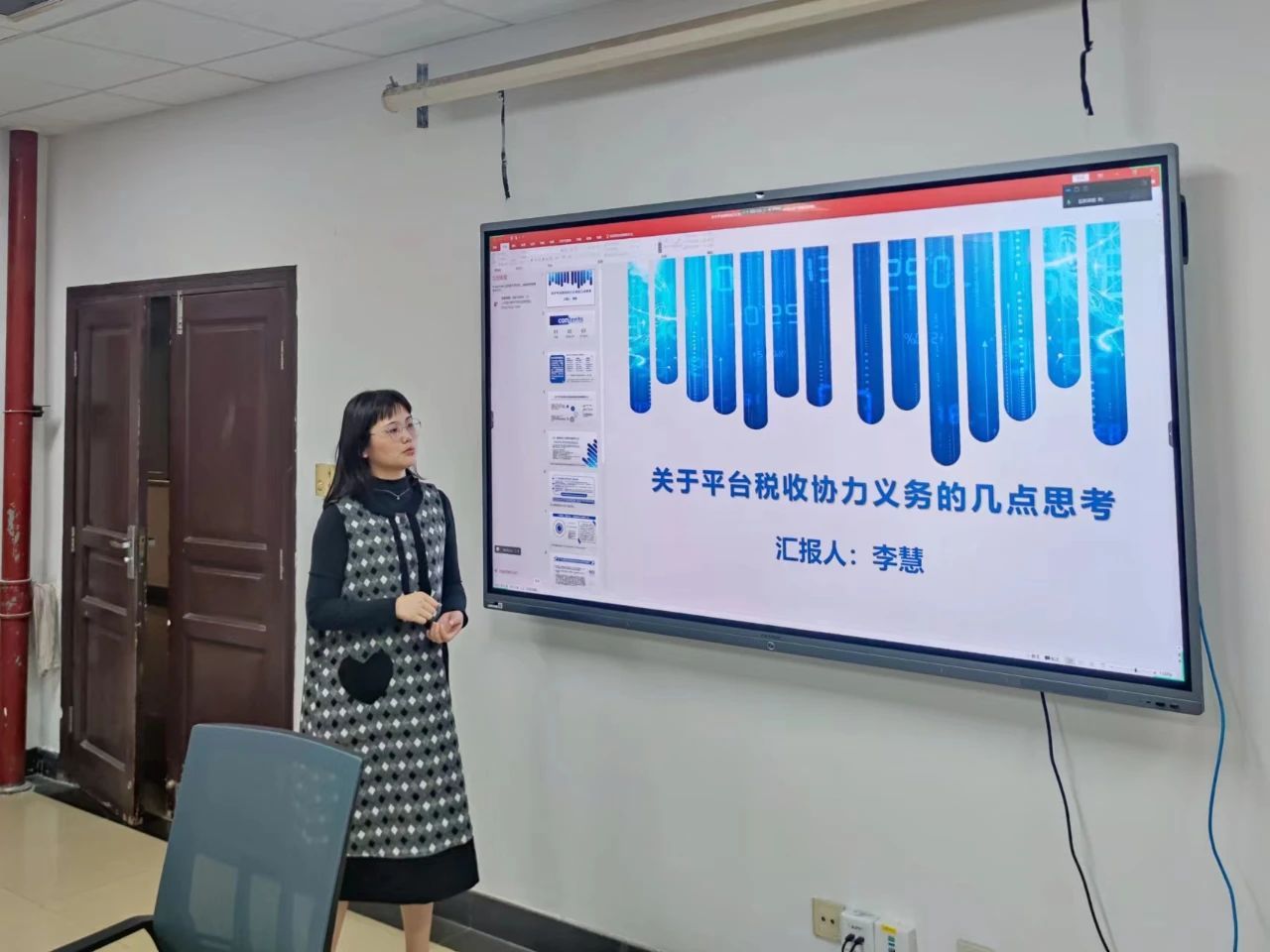 在主题汇报阶段,李慧就第三方税收协力义务的相关概念、主体范围、平台税收协力义务的内涵与外延、平台信息披露义务的履行和信息保护间的平衡以及平台责任等问题进行了汇报。她认为,应将平台纳入税收协力义务的主体范围。平台作为第三方,有别于纳税人和扣缴义务人,仅承担补充协助义务。出于技术、成本以及纳税人信息保护等考量,应对平台的涉税信息披露范围进行限定,且平台无需主动向税务机关报送含税收风险的涉税信息并对其真实性负责。在平台税收协助义务的责任追究方面,应综合考虑平台行为的危害结果和主观状态,且可借鉴域外相关经验规定相应的免责条款。